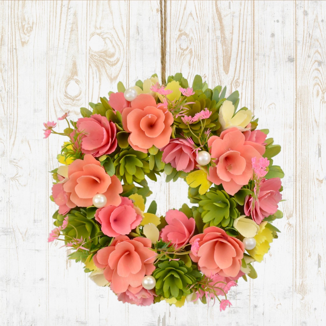 Odkryjte krásu jara s naším ručně vyráběným věncem z dřevěných kytiček v něžných růžových odstínech a dalších veselých jarních barvách. Tento elegantní věnec přináší přírodní kouzlo do každého domova a je ideální pro dekoraci vašich dveří, stěn nebo oken.