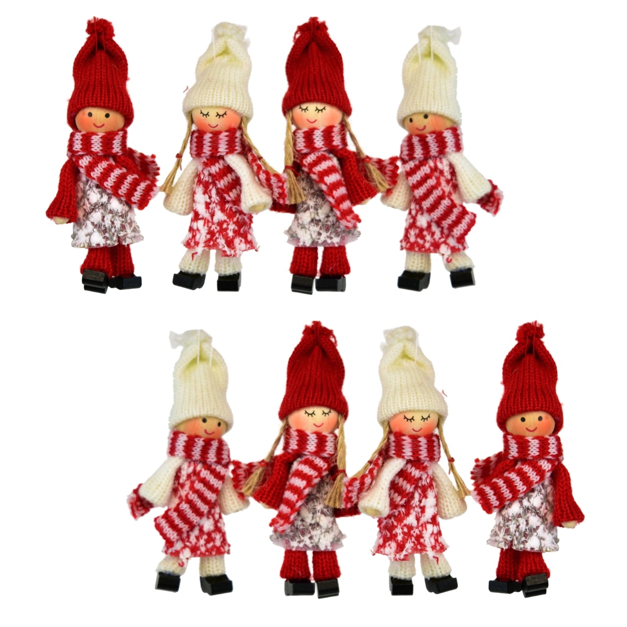 Pletené panenky s nožičkami a šálou na zavěšení jsou skvělou volbou pro vánoční dekoraci vašeho domova nebo pro interiérový design. Tento praktický set obsahuje: