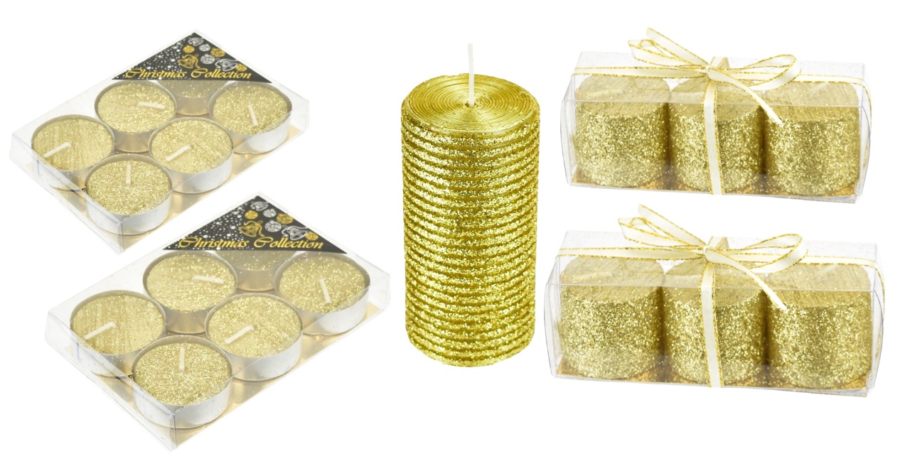 Sada svíček se zlatým glitrem
