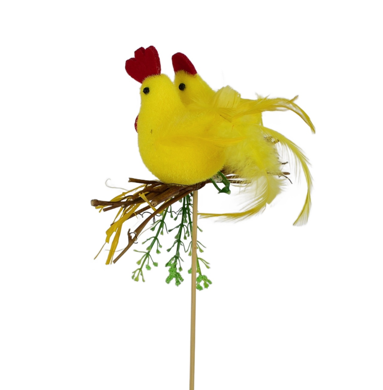 Udělejte si Velikonoce ještě víc jedinečné s touto úžasnou dekorací! Slepička s kohoutkem na otýpce a lýkovou mašlí je dokonalým doplňkem do vaší domácnosti. Vyrobená s láskou a precizností, tato velikonoční dekorace přinese do vašeho domova radost a veselí. S velikostí 35 cm včetně špejle a rozměry zvířátek 6x9 cm, se tento kreativní kousek stane hlavní atrakcí na vašem stole či polici.