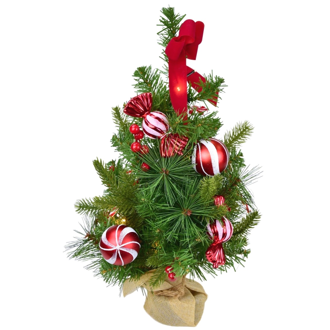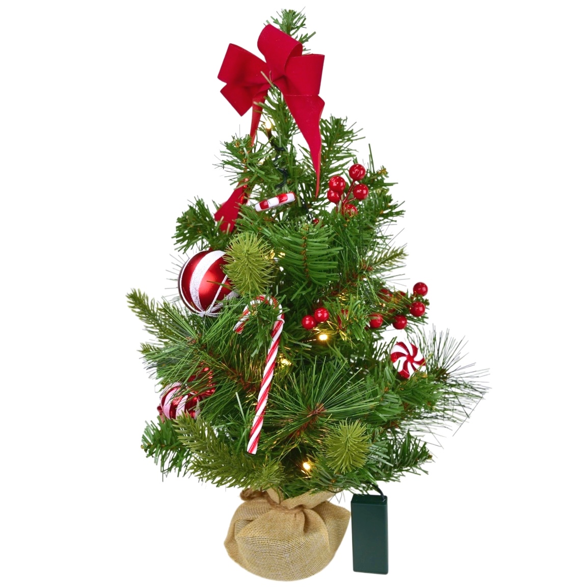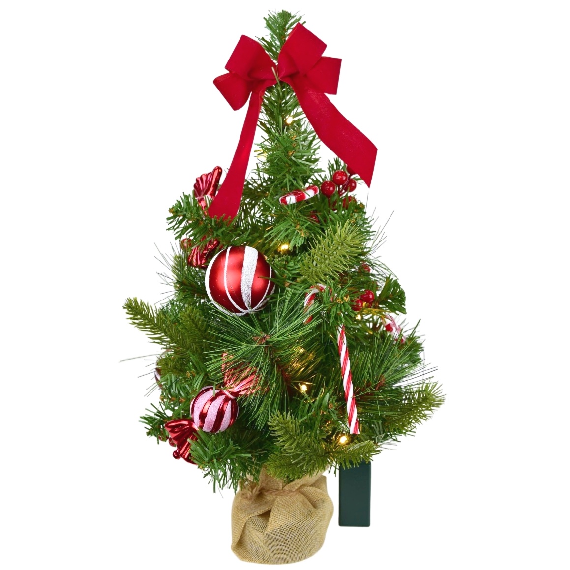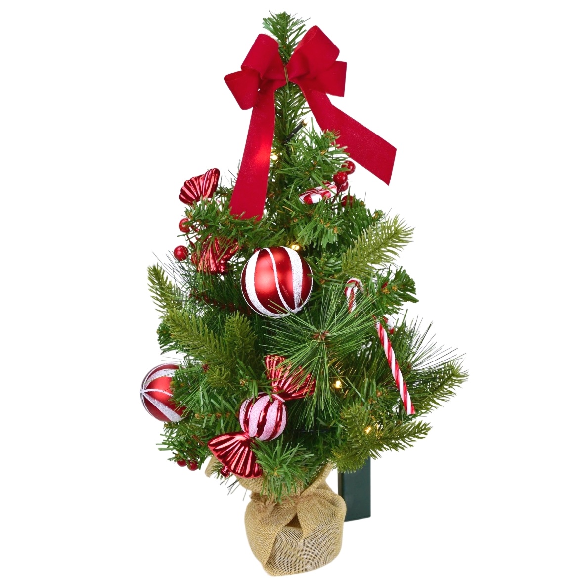 Stromek s červenou mašlí a candy dekoracemi 15×LED, 50 cm