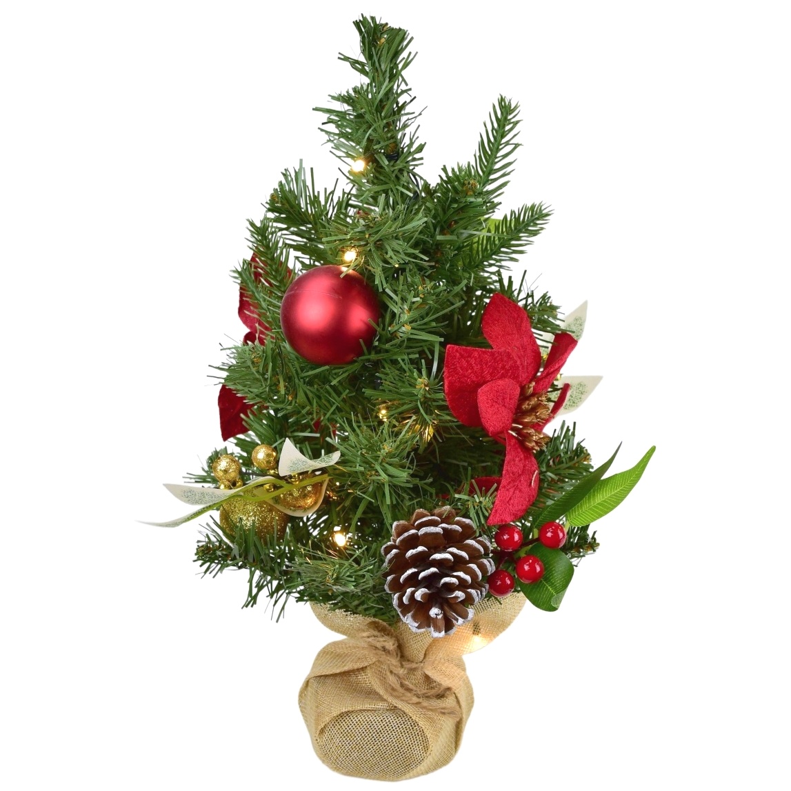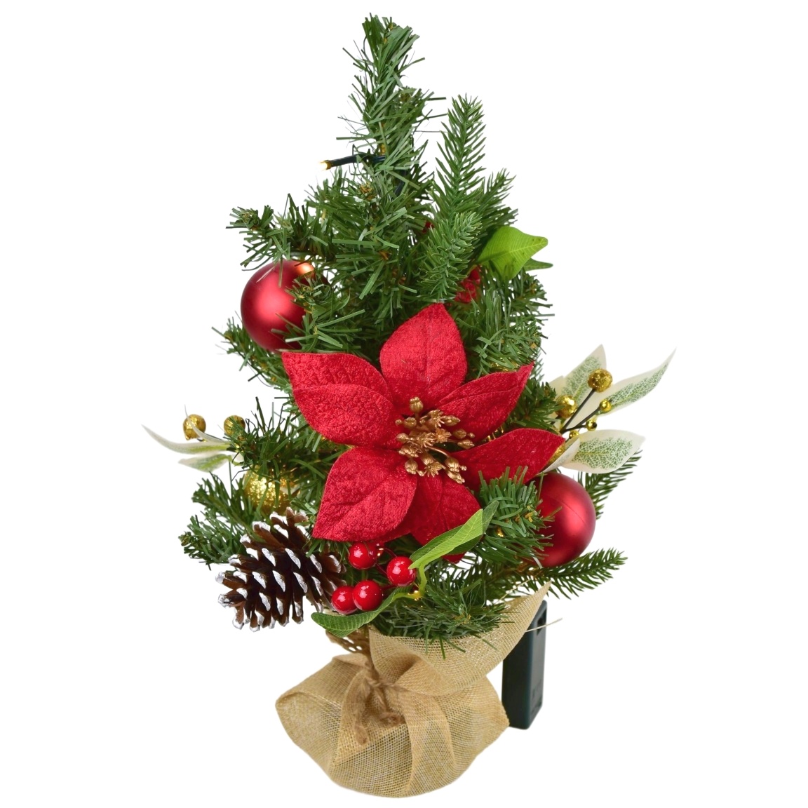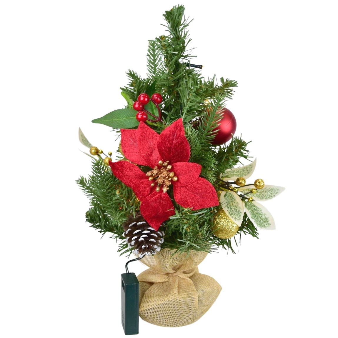 Stromek s ponsetiemi s červenými a zlatými kouličkami 10×LED, 40 cm