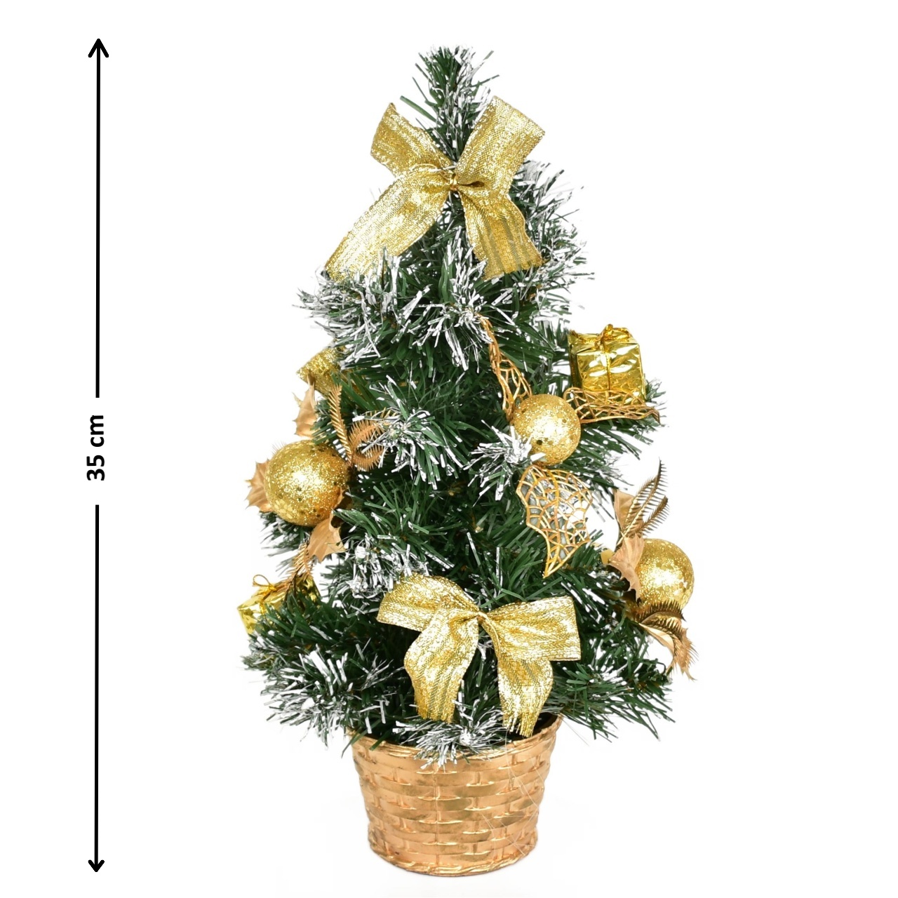 Zpříjemněte si vánoční atmosféru s naším zdobeným vánočním stromečkem ve zlatém provedení. Tento elegantní stromek je výšky 35 cm a přinese do vašeho domova pohodu a radost během vánočního období.