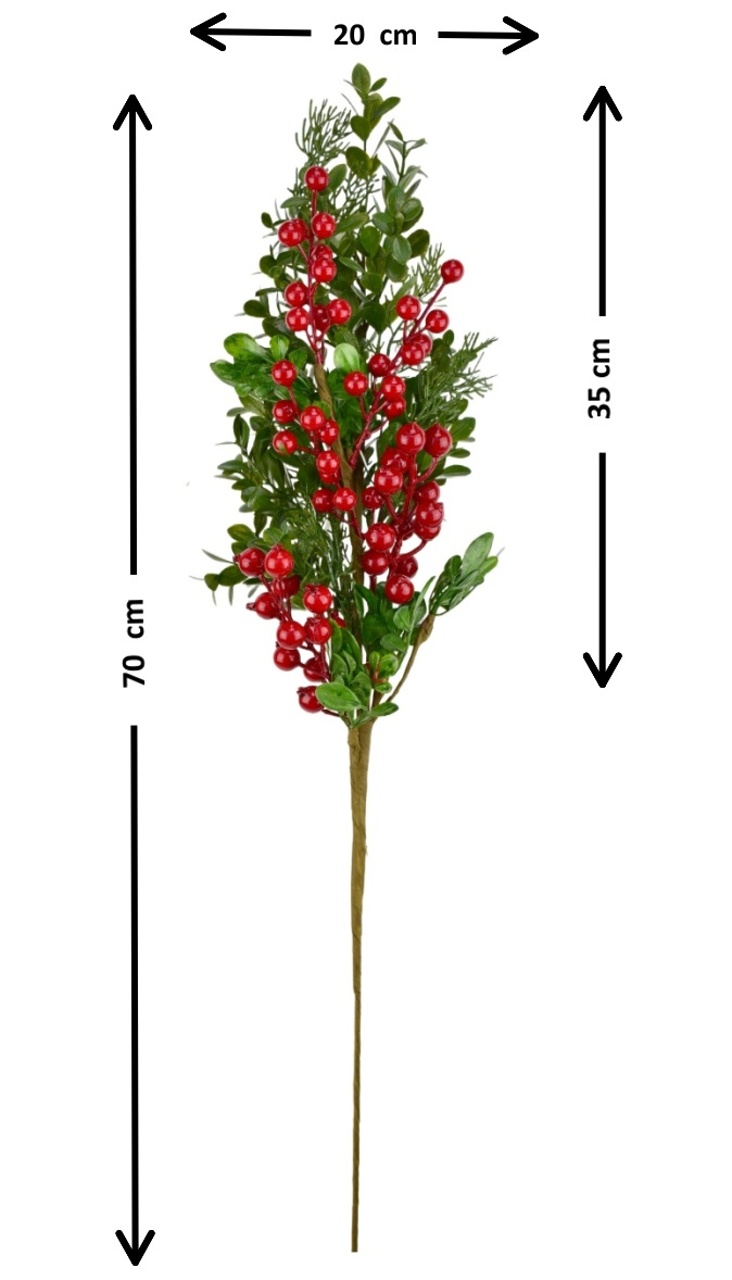 Pro oživení vašeho interiéru nebo na výzdobu slavnostních příležitostí je ideální volbou naše větev zdobená borůvčím a bezinkami. Tato elegantní dekorace s výškou 70 cm a šířkou 25 cm přinese do vašeho domova nádech přírody a elegance. S jejím zeleným borůvčím a bezinkami vytváří krásný vizuální kontrast, který zaujme každého.