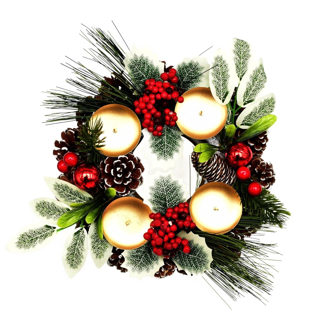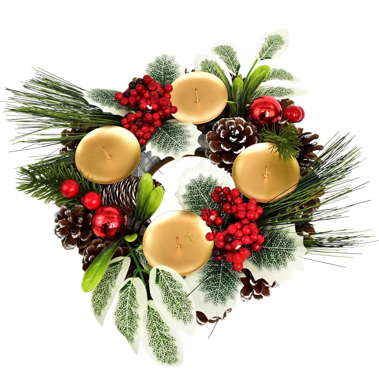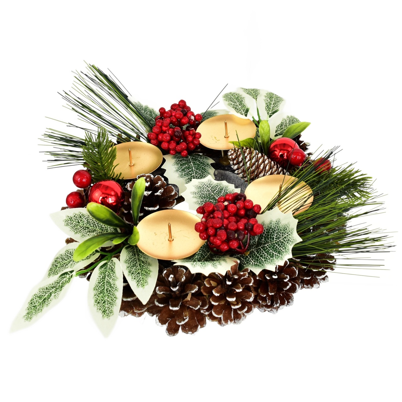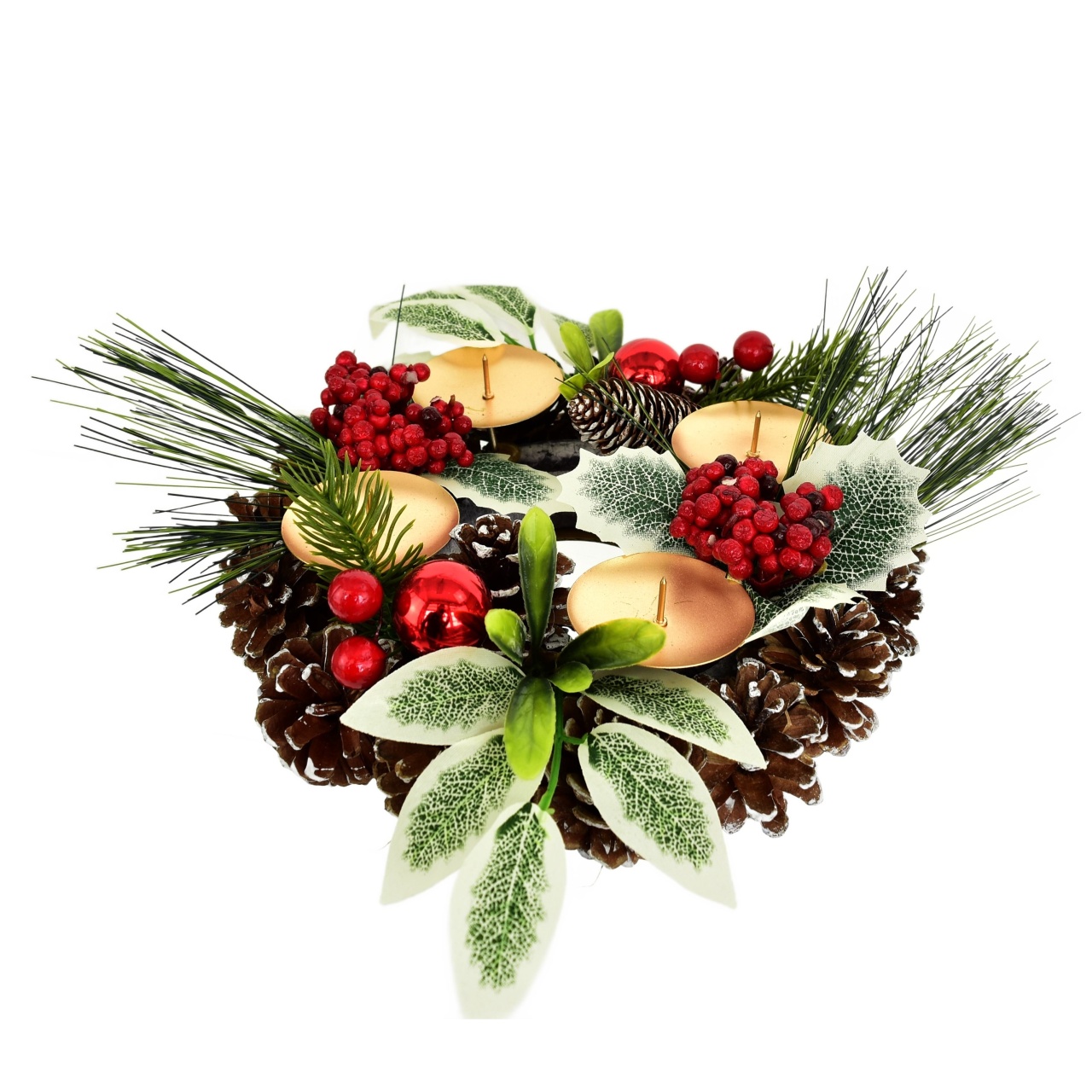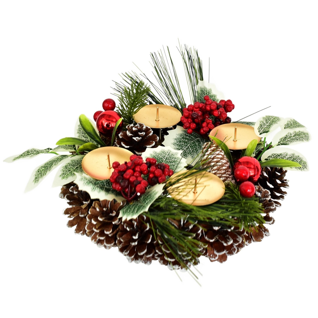 Vytvořte si kouzelnou atmosféru během vánočního období s naším adventním svícnem šiškovým. Tento elegantní kousek je pečlivě zdoben větvičkami cestmíny a borovice a doplněn o červené kuličky a bezinky. Přináší kousek přírody přímo do vašeho domova. S průměrem 24 cm a výškou 7 cm se skvěle hodí na jakýkoliv stůl nebo jako ústřední prvek vašeho vánočního dekoru.