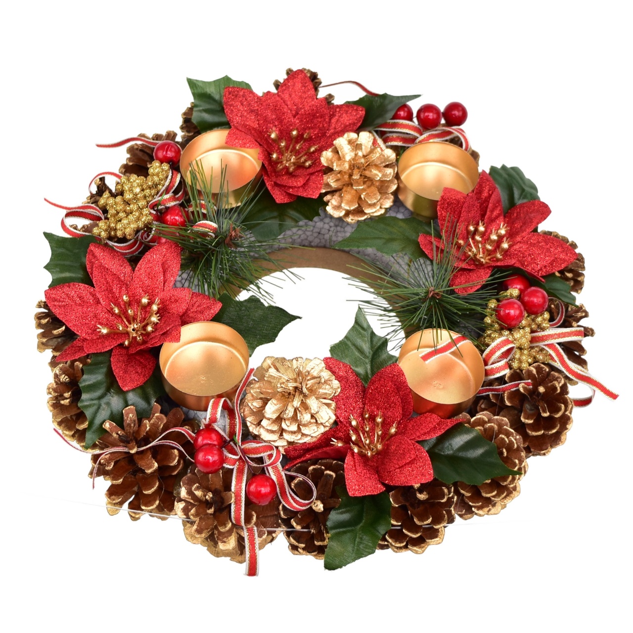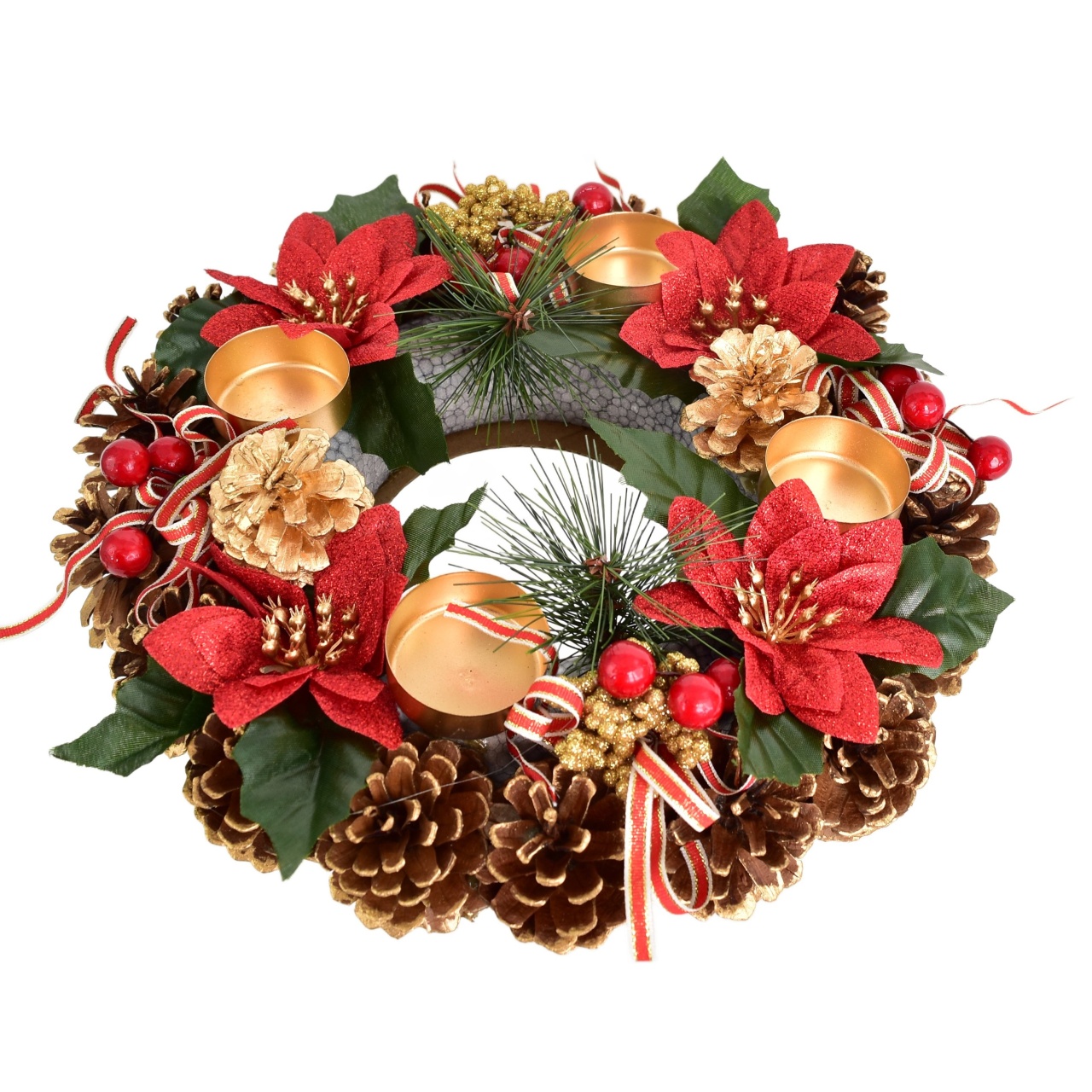 Adventní svícen šiškový s ponsetiemi 8x30 cm