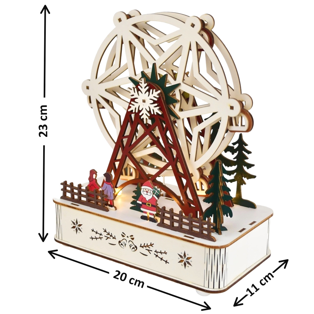 Objevte kouzlo Vánoc s naším dřevěným točícím kolotočem s LED o rozměrech 23x20 cm! Tento nádherný kousek vyrobený ze topolového dřeva vdechne do vašeho domova jedinečnou atmosféru a přinese úsměv na tváře nejen dětem, ale i dospělým.