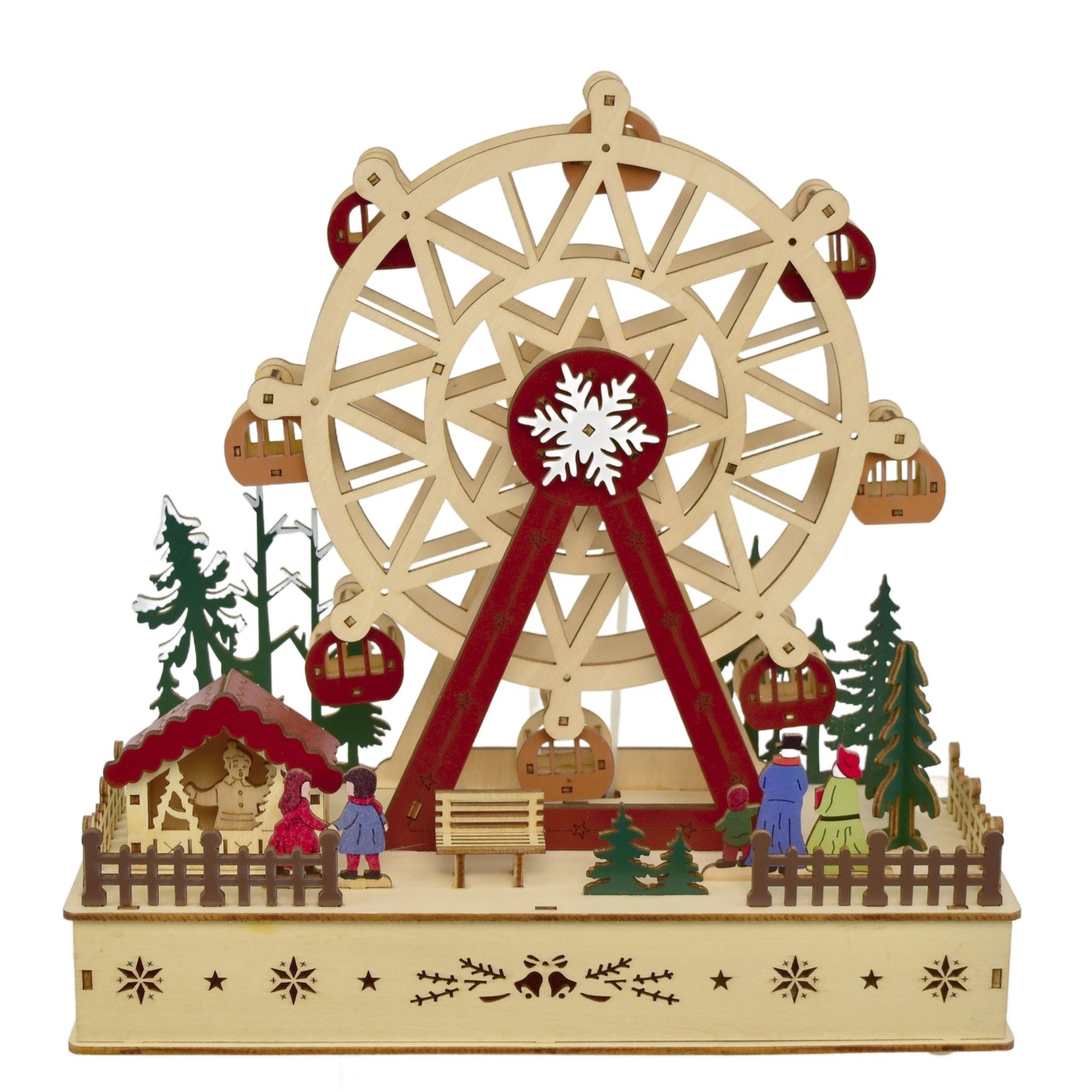 Dřevěný točící kolotoč s LED 28,5x28 cm