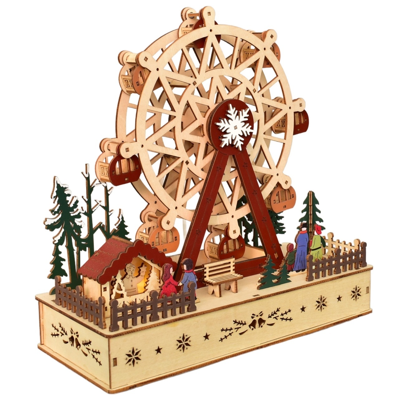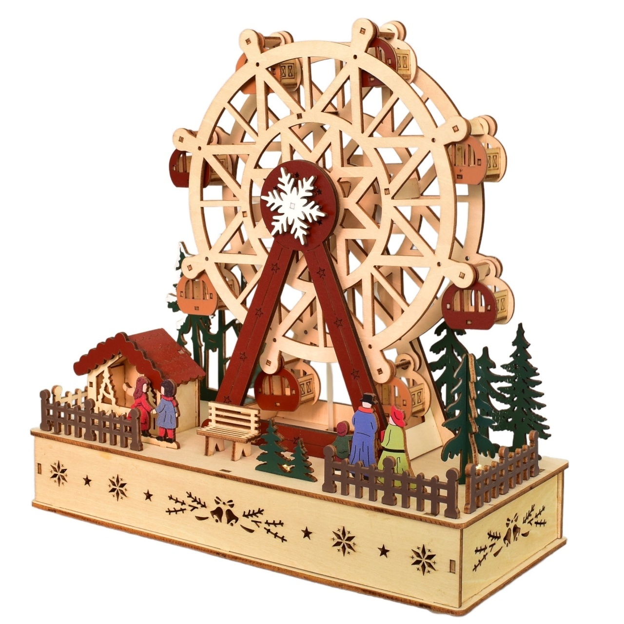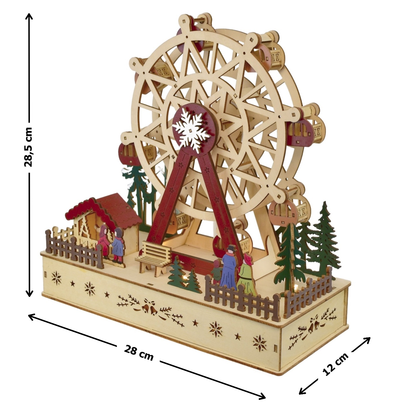 Objevte kouzlo Vánoc s naším dřevěným točícím kolotočem s LED o rozměrech 28,5x28 cm! Tento nádherný kousek vyrobený ze topolového dřeva vdechne do vašeho domova jedinečnou atmosféru a přinese úsměv na tváře nejen dětem, ale i dospělým.