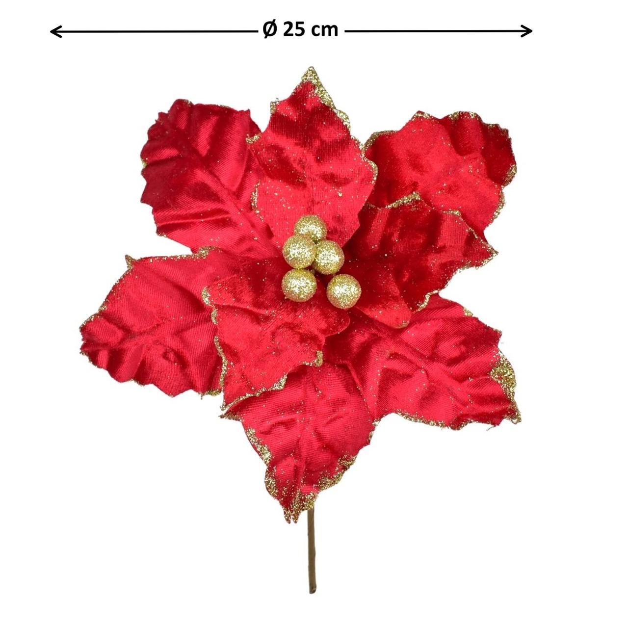Květ Poinsetie je perfektní volbou pro vytvoření vánoční atmosféry v každém interiéru. Tento textilní zápich se pyšní sametovou červenou barvou, která dodává vašim dekoracím šmrnc a eleganci.