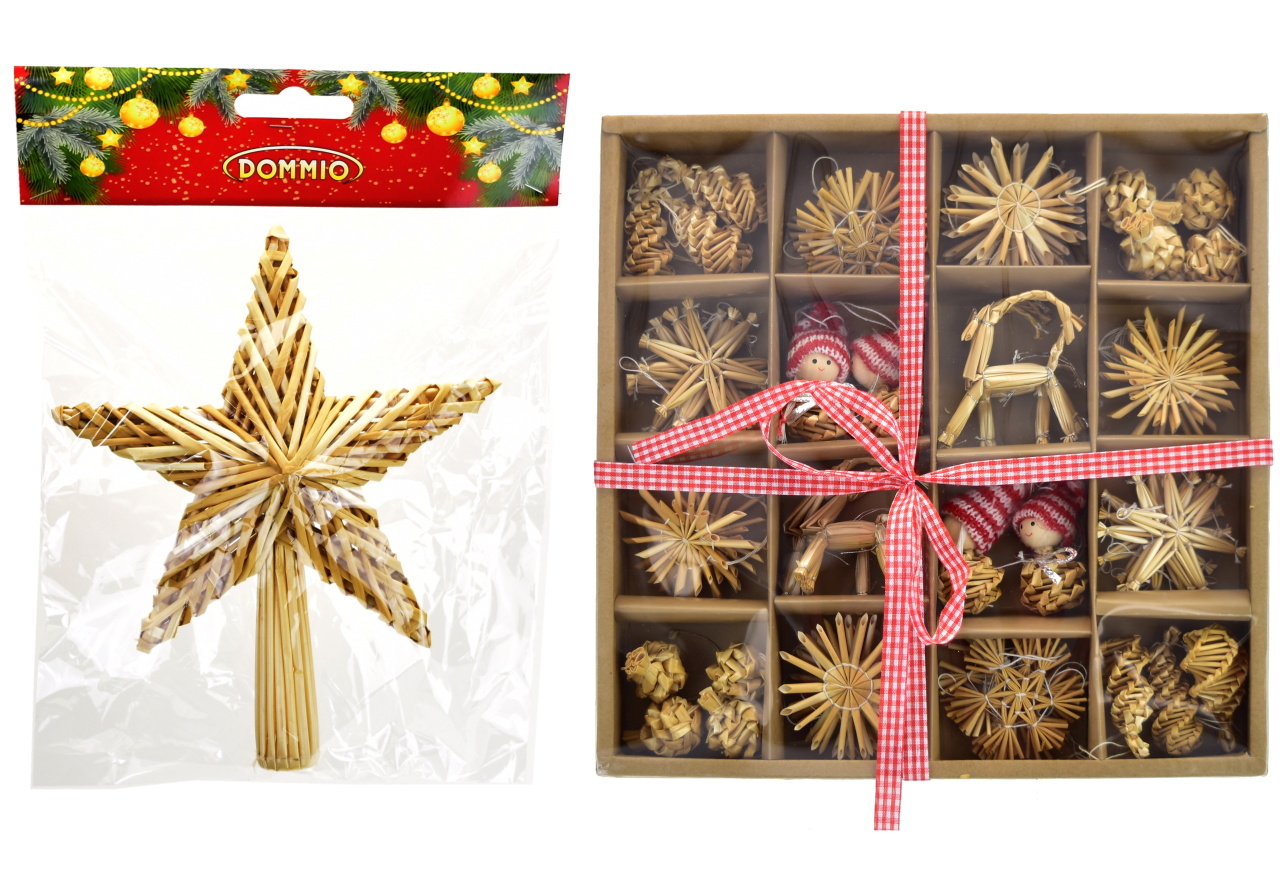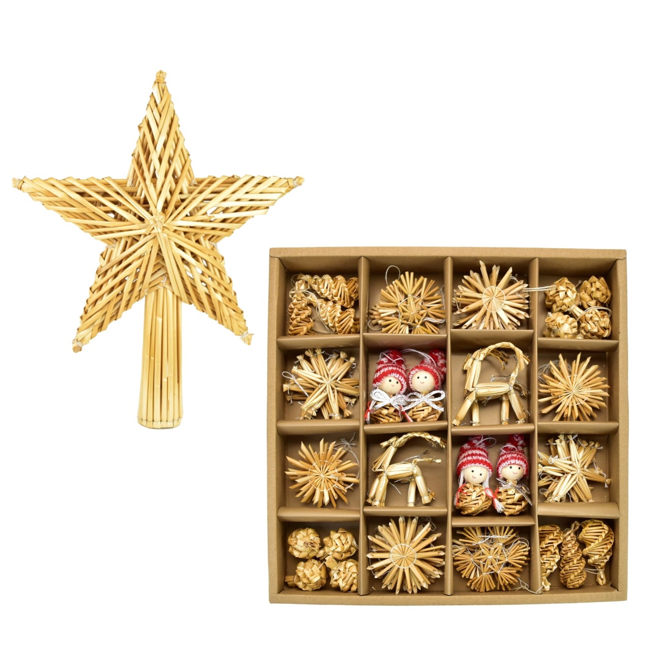 Slaměná špička hvězda 25x30 cm a sada 56 ks slaměných ozdob s figurkami
