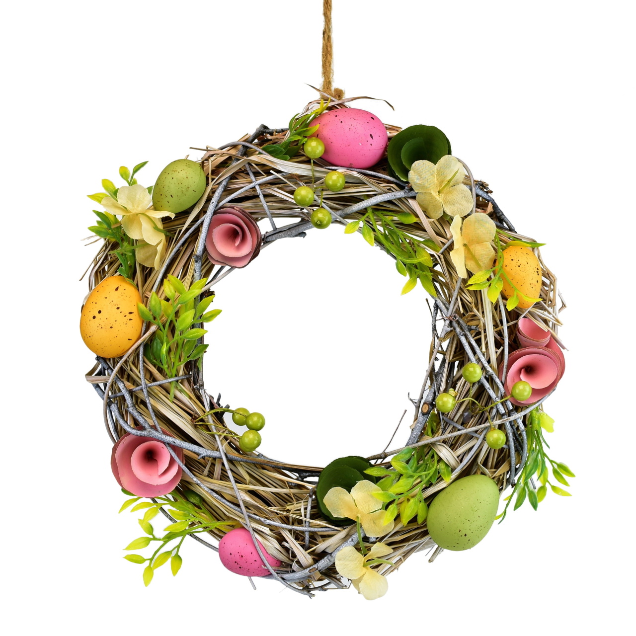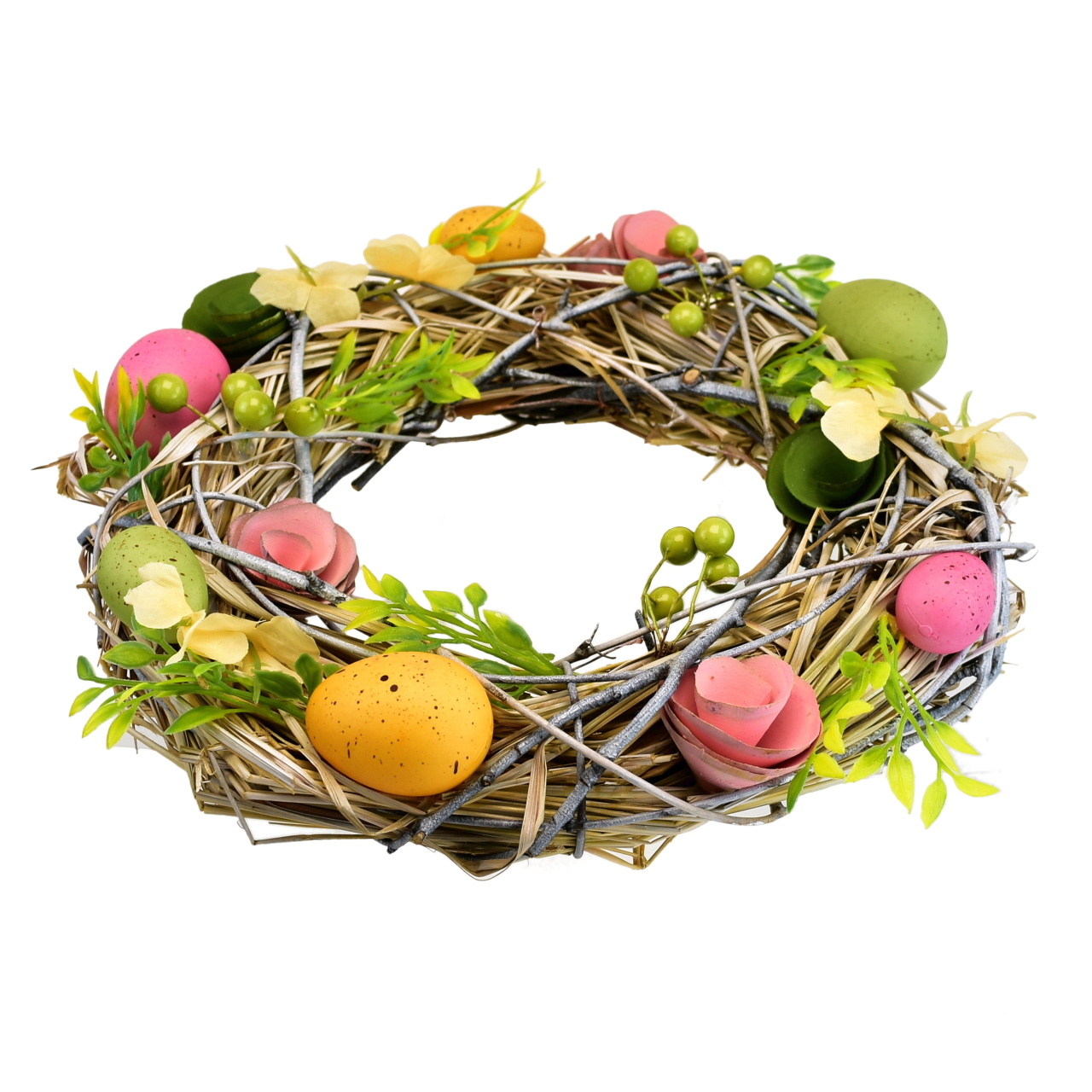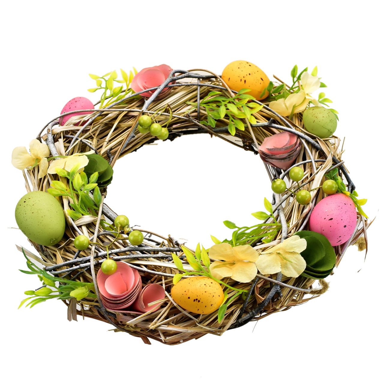 Slámový věnec s vajíčky a s kvítky Ø30 cm