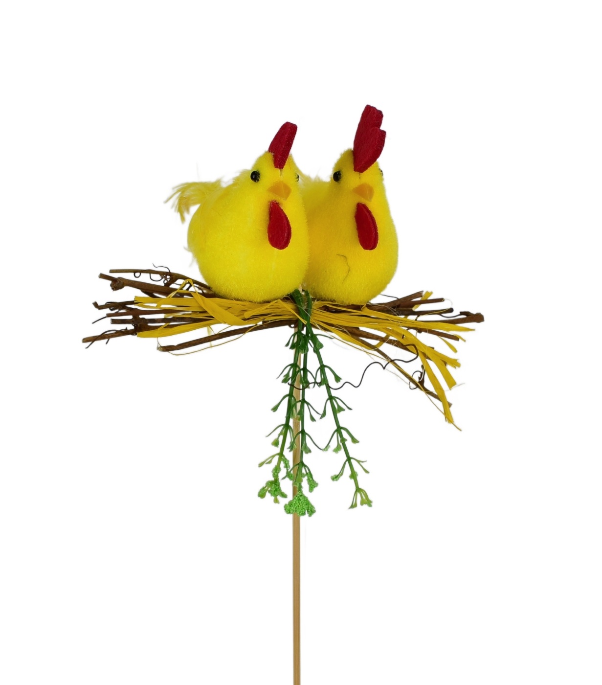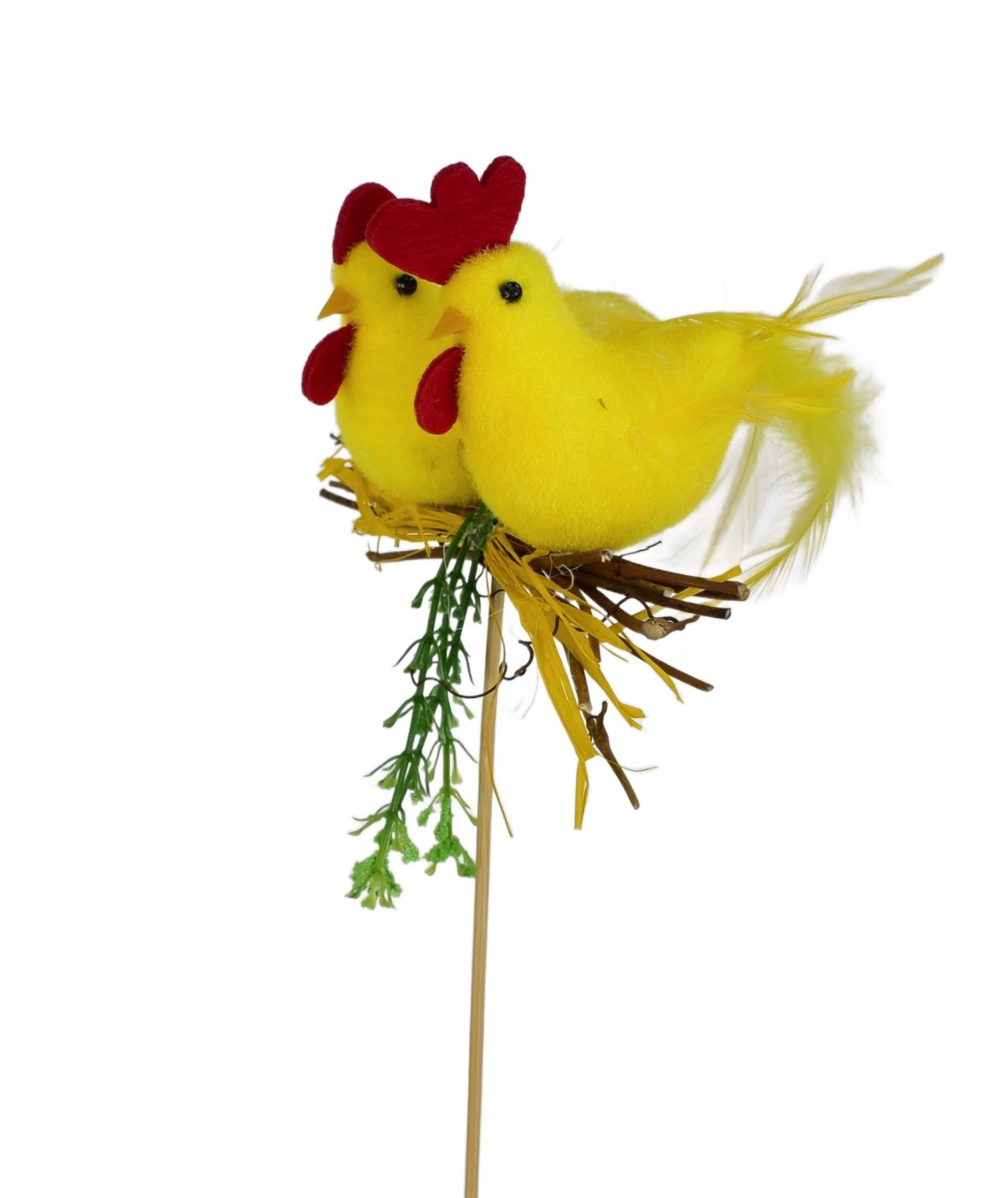 Udělejte si Velikonoce ještě víc jedinečné s touto úžasnou dekorací! Slepička s kohoutkem na otýpce a lýkovou mašlí je dokonalým doplňkem do vaší domácnosti. Vyrobená s láskou a precizností, tato velikonoční dekorace přinese do vašeho domova radost a veselí. S velikostí 35 cm včetně špejle a rozměry zvířátek 6x9 cm, se tento kreativní kousek stane hlavní atrakcí na vašem stole či polici.