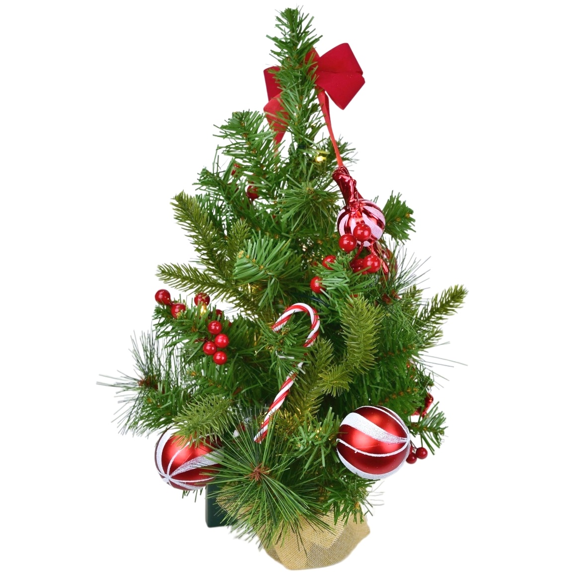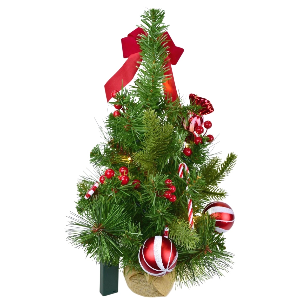 Stromek s červenou mašlí a candy dekoracemi 15×LED, 50 cm