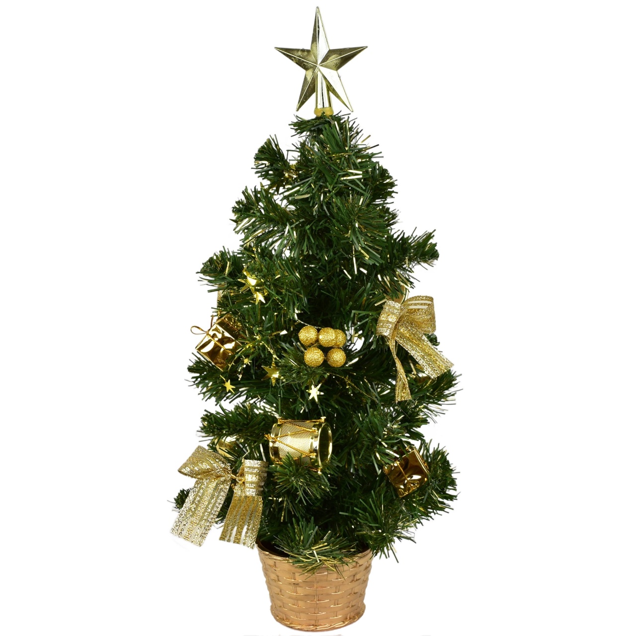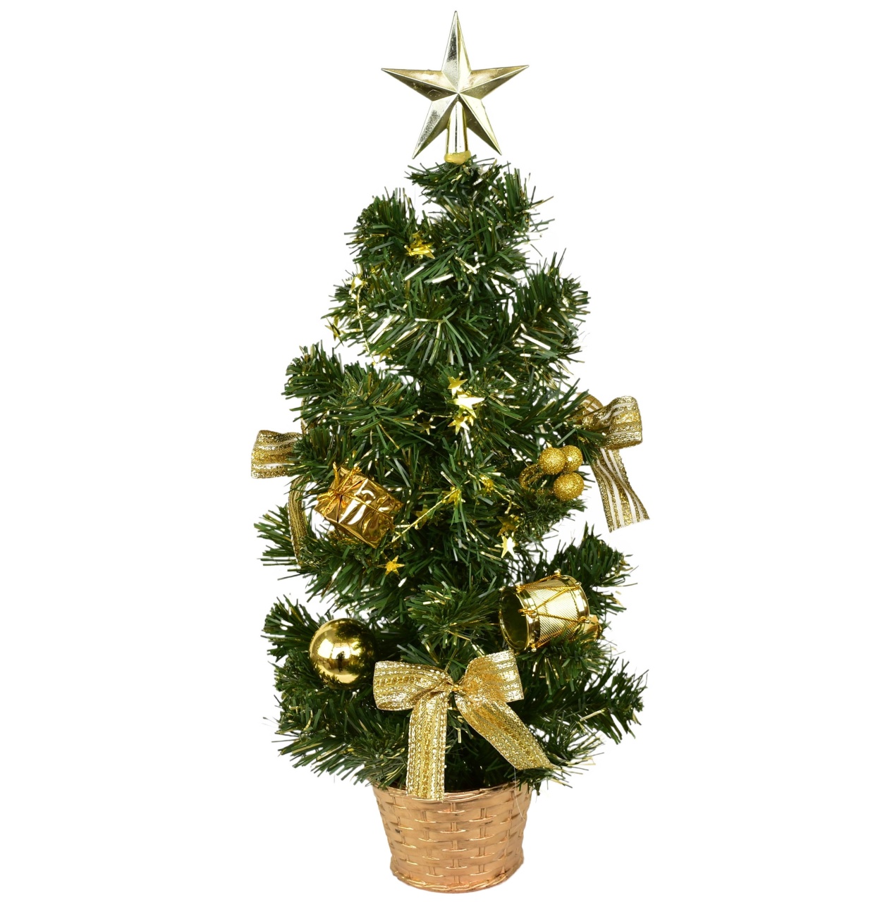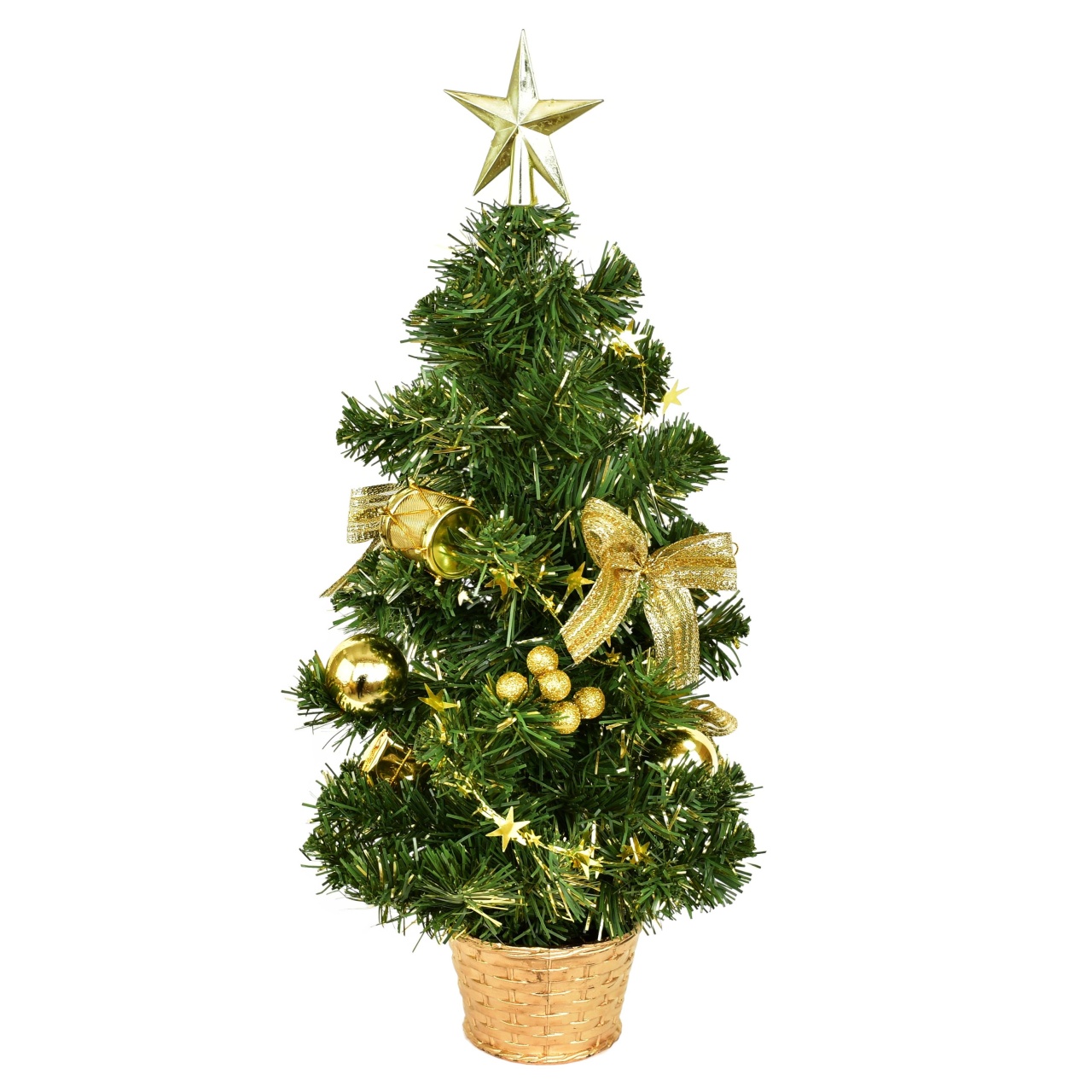 Vytvořte si kouzelnou vánoční atmosféru s naším vánočním stromkem se zlatou hvězdou! Tento nádherný stromek měří pouhých 45 cm a je ideální pro zdobení vašich domovů, kanceláří nebo vánočních trhů. Je potažený ozdobami, které zahrnují: