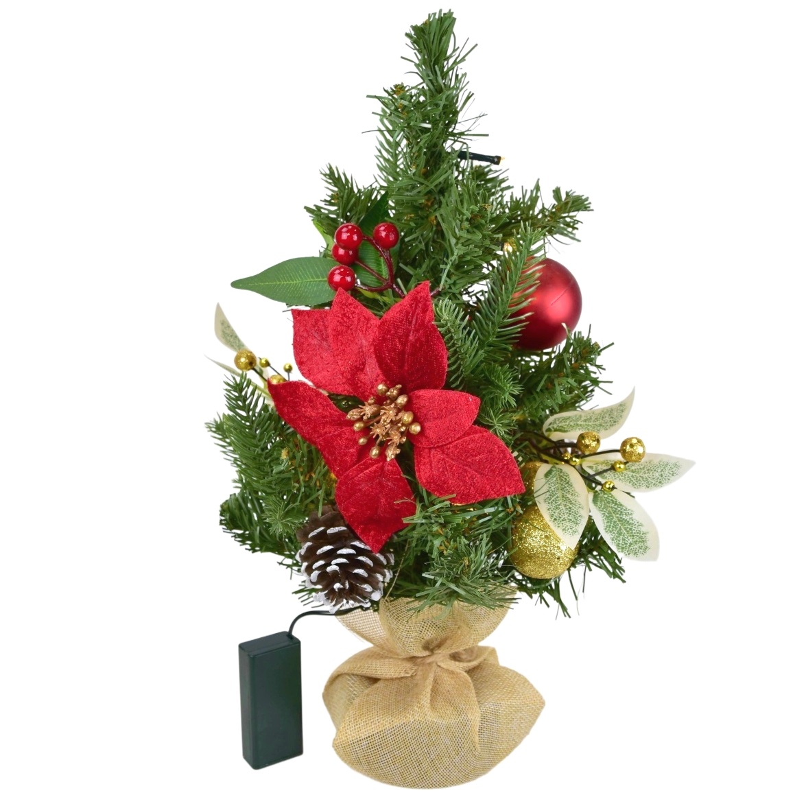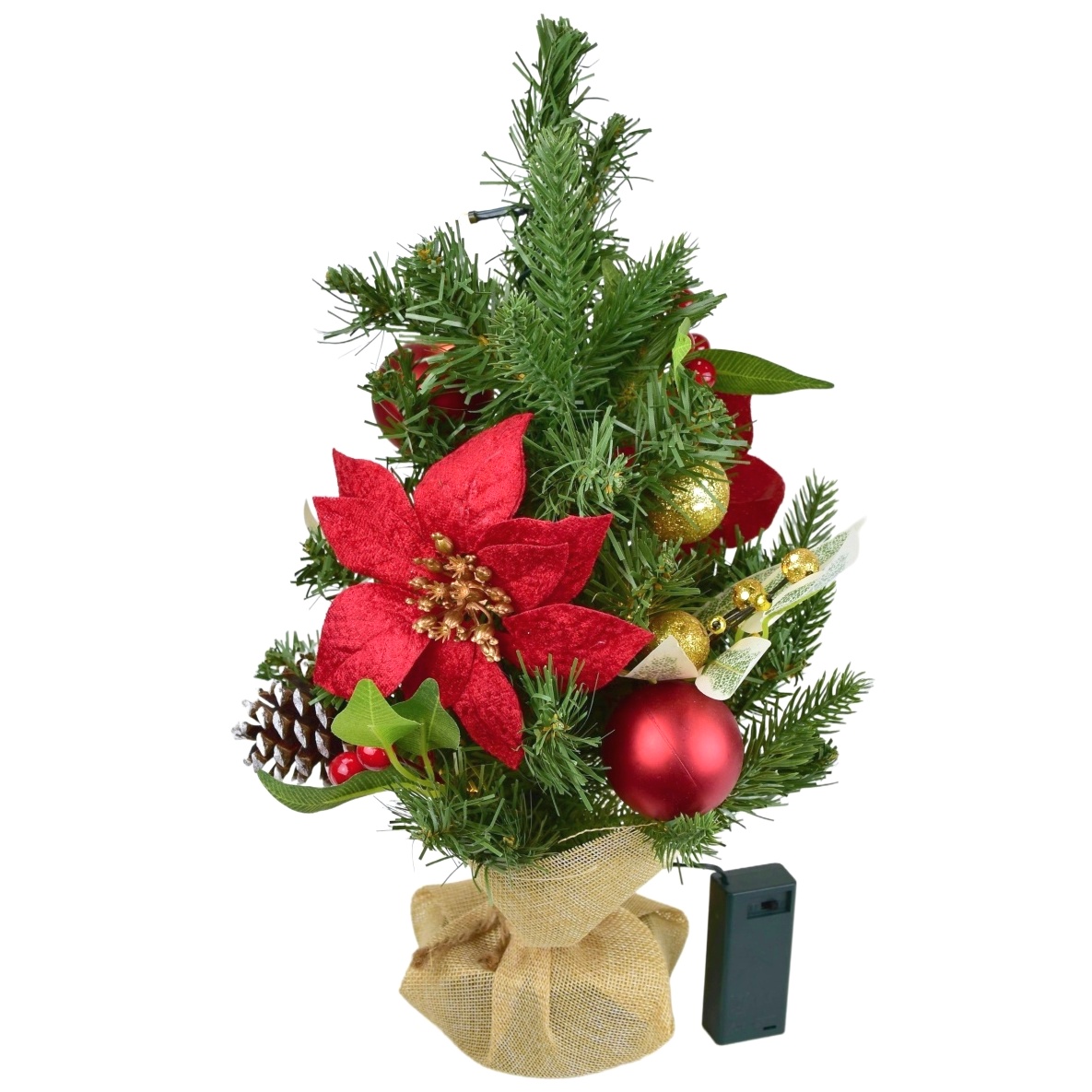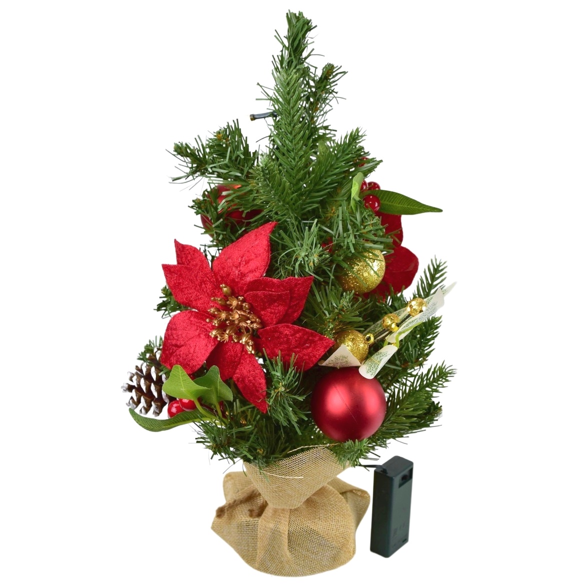 Stromek s ponsetiemi s červenými a zlatými kouličkami 10×LED, 40 cm