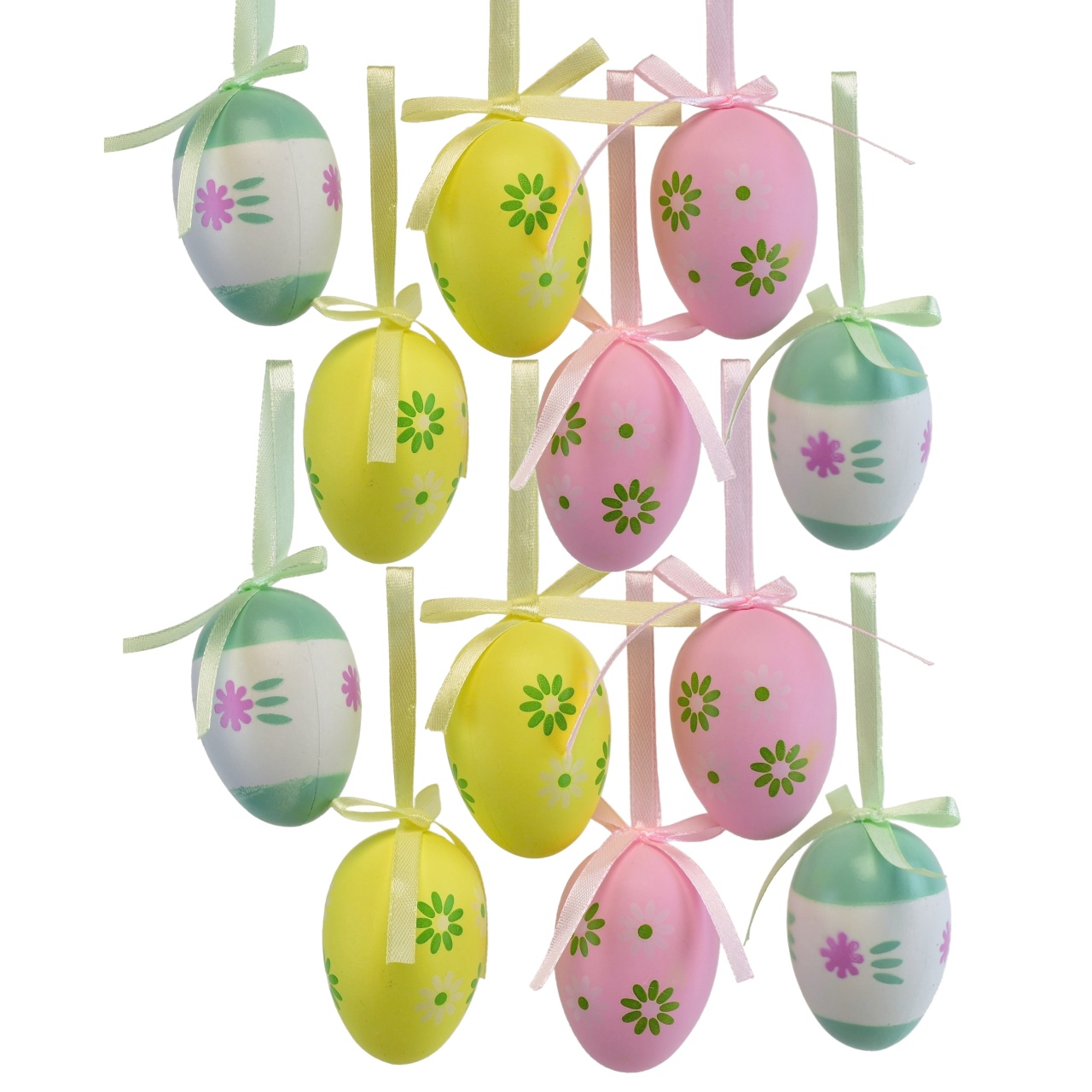 Velikonoční vajíčka s květinami představují perfektní dekoraci pro vaše velikonoční svátky. Tato sada obsahuje 12 ručně malovaných vajíček o velikosti 6x4 cm, která dodají vašemu domovu jarní a veselou atmosféru.