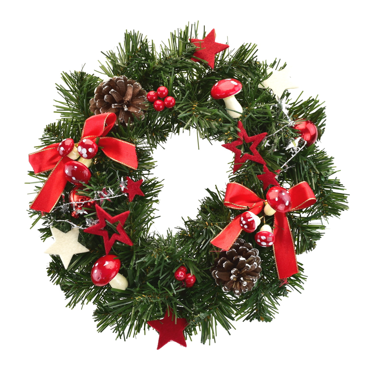 Tento vánoční věnec s muchomůrkami o průměru 30 cm je ideální volbou pro každého, kdo chce přidat do svého domova kousek vánoční magie. Vyroben z kvalitních materiálů, mezi které patří plast, kov, šišky a flís, zajišťuje dlouhou životnost a odolnost vůči různým podmínkám. Tento dekorativní prvek můžete snadno umístit na vaše vstupní dveře nebo jako součást vašeho interiérového designu.
